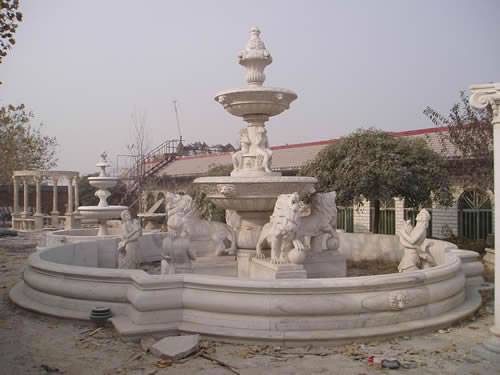 Элегантный и величественный, этот красивый фонтан создает атмосферу непринужденной роскоши. Это произведение, разработанное и вылепленное из статуй львов, отличается сложными деталями и двумя ярусами мраморной мастерской работы.