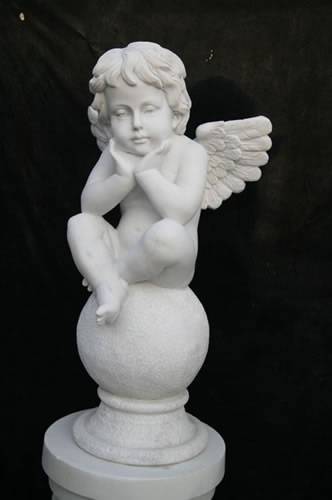 Этот красивый маленький ангел сидит на шаре и выглядит так мило. Все ручной работы из натурального мрамора, роскошное произведение искусства.