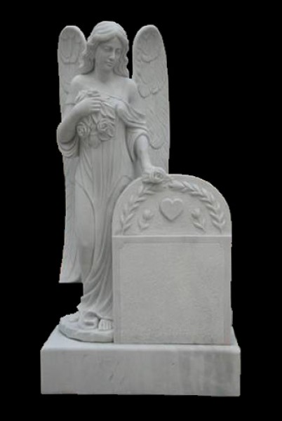 Этот красивый стоящий крылатый ангел опирается на планшет, это великолепное произведение искусства из прекрасного белого мрамора. Мы можем вырезать на нем имя ваших близких, пусть мрамор сделает так, чтобы ваши любимые навсегда остались в вашей памяти.
